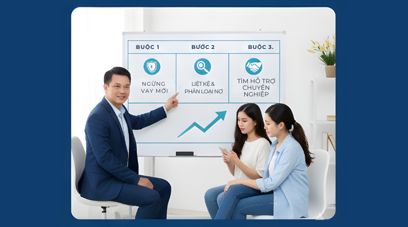 Tìm kiếm sự tư vấn chuyên nghiệp: Thay vì tự xoay xở với các gói vay tiền nhanh rủi ro, hãy tìm đến các chuyên gia tái cấu trúc nợ để có phương án xử lý dòng vốn bền vững.